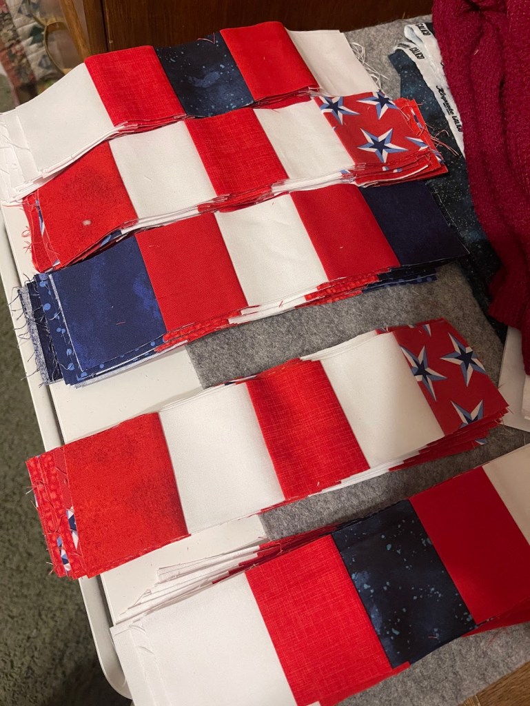 On a personal note, this year our country turns 250 years old, so I have started making a patriotic quilt. If we are so lucky as to have another town quilt show this 4th of July, I hope we will have a few celebratory pieces to commemorate the United States. I acknowledge that we are having a hard time uniting right now at a national level. This pains my heart deeply. I hope to be a voice of civility and bridge-building at a local level.